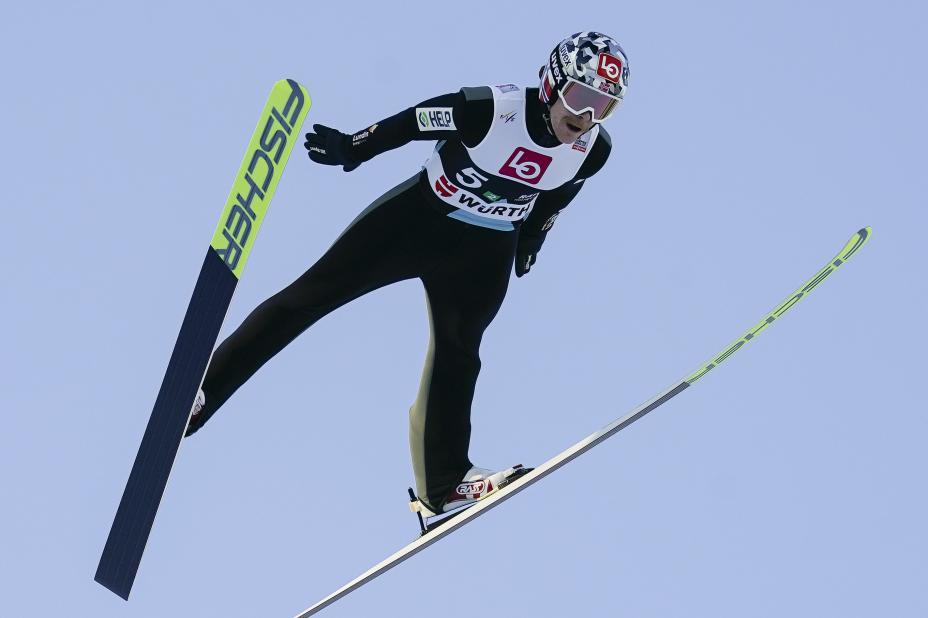 Johann André Forfang tok NM-tittelen i Holmenkollen tidlig i februar, men har vært igjennom koronasmitte og gikk glipp av OL. Han landet på 126 meter og er på 11.-plass.