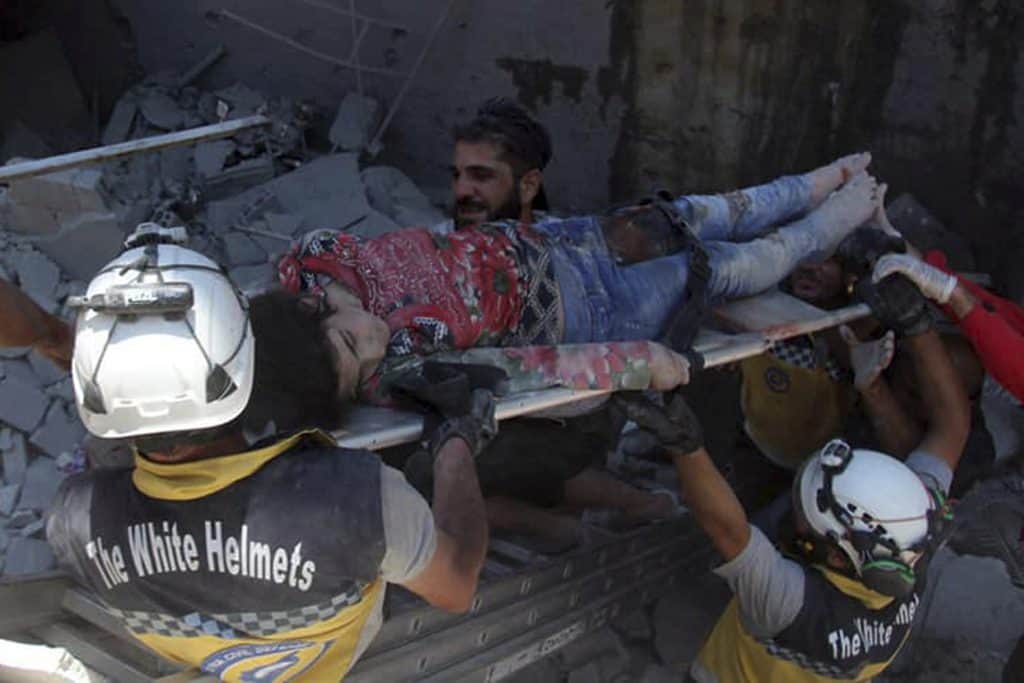 Sosiale medier har de siste dagene vært fulle av hjerteskjærende bilder og videoer av barn som er blitt såret i de syriske og russiske luftangrepene. Et av bildene ble tatt i Ariha onsdag og viser tre søstre som kjemper for livet. To av dem er fanget i ruinene, mens de klamrer seg til lillesøsteren som henger og dingler fra en utbombet bygning. Den ene, en femåring, døde av skadene, mens søstrene kjemper for livet på sykehus, ifølge lokalt helsepersonell.