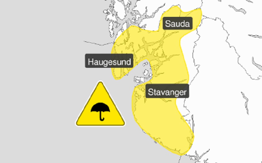 Varsel: Fra mandag ettermiddag til tirsdag morgen ventes det mye regn i deler av Hordaland og Rogaland.