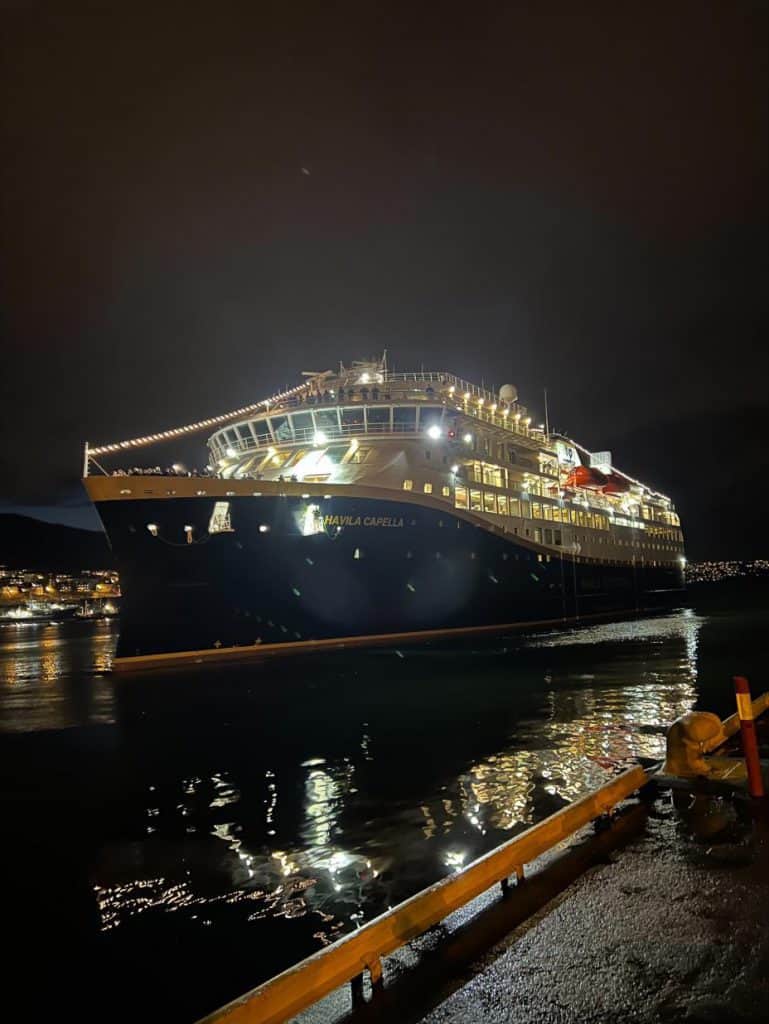 Kystruteskipet Havila Capella er strandet i Bergen på grunn av sanksjonene mot Russland, som skaper usikkerhet om forsikringsdekningen, ifølge selskapet.