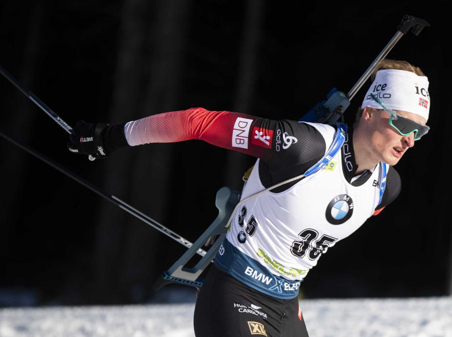 Sport: Nordmannen klarte å sikre seieren tross et bomskudd på stående skyting. Han vant med 0,5 sekunds margin til tyskeren Justus Strelow, mens Sverre Dahlen Aspenes tok 3.-plassen og var slått med bare ni tidels sekund av lagkamerat Andersen.