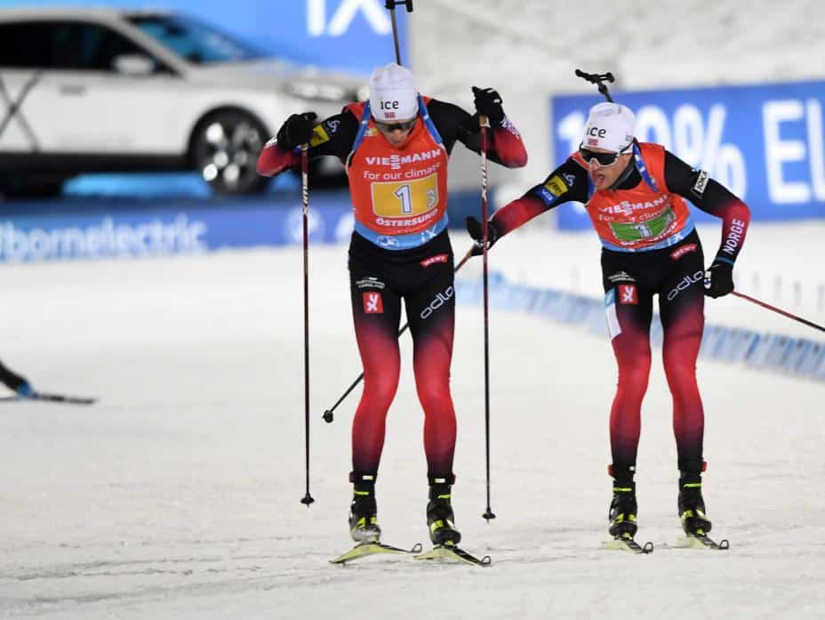 Sivert Bakken, Tarjei Bø, Johannes Thingnes Bø og Vetle Sjåstad Christiansen gikk inn til suveren Norge-seier på skiskytterstafetten i Östersund lørdag.