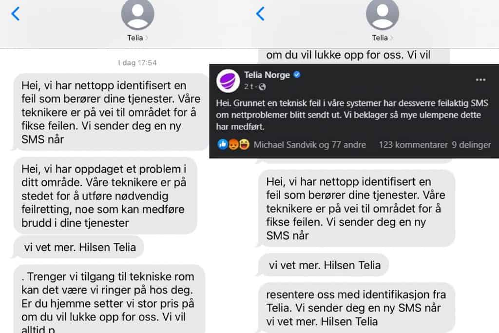 Samfunn: Telia opplyser at de grunnet en teknisk feil feilaktig har sendt ut en mengde SMS-meldinger om nettproblemer.