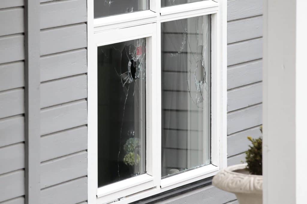 Knuste vinduer etter at det ble avfyrt skudd mot et bolighus på Skedsmokorset på Romerike. Foto: Håkon Mosvold Larsen / NTB scanpix