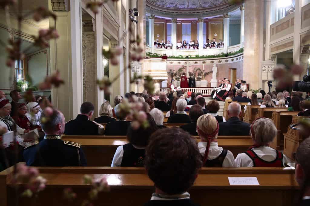 Slottskapellet pyntet med bringebærblader fra Skaugum