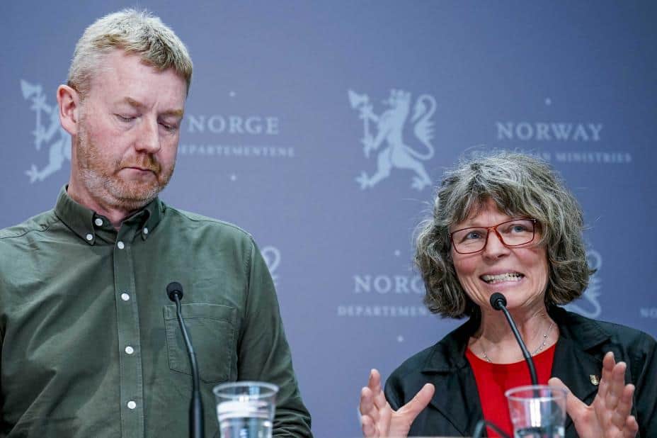 Forhandlingsleder og leder i Norges Bondelag, Bjørn Gimming, og leder i Norsk Bonde- og Småbrukarlag, Kjersti Hoff. Foto: Stian Lysberg Solum / NTB