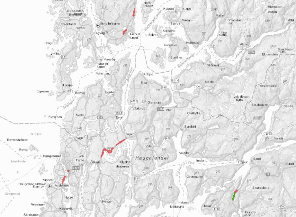 Dette er strekningene på Haugalandet og i Sunnhordland som skal asfalteres i tiden fremover. Illustrasjon: Statens Vegvesen