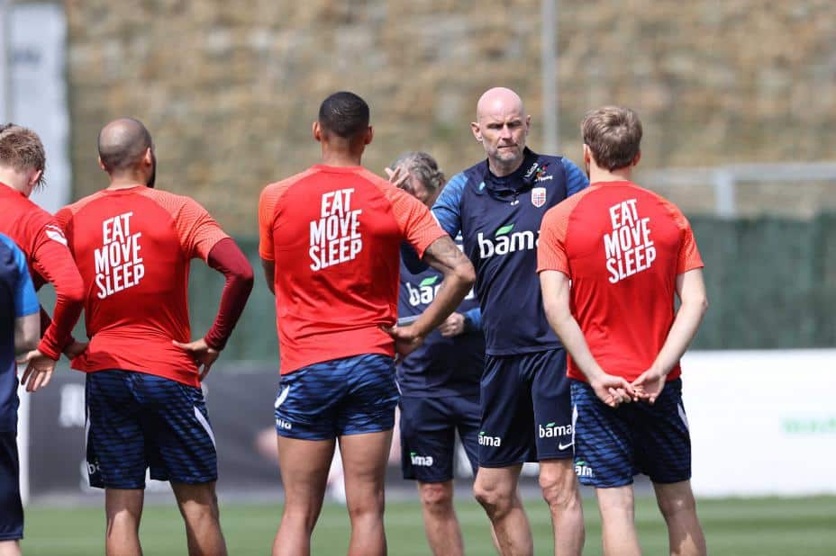 – Den diskusjonen skal vi ikke ta her, men det er viktig at vi ikke skyver den vekk og sier det er umulig at vi kan få til gode baner i Norge. Det kommer mange hybridbaner – mange med blandingen av gress og kunstig innsydd gress. Den diskusjonen må vi ta, sa en tydelig engasjert landslagssjef onsdag.