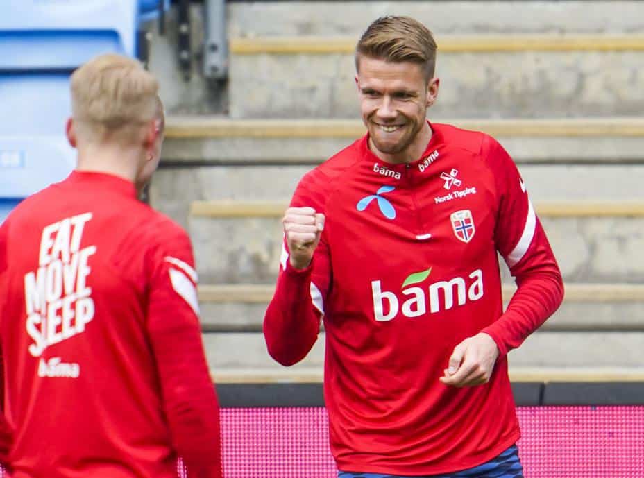 Reserver: 13 Jacob Karlstrøm – 2 Morten Thorsby, 4 Stefan Strandberg, 5 Leo Østigård, 6 Mathias Normann, 12 Stian Gregersen, 14 Julian Ryerson, 15 Jens Petter Hauge, 16 Fredrik Aursnes, 19 Alexander Sørloth, 20 Mats Møller Dæhli, 23 Veton Berisha.