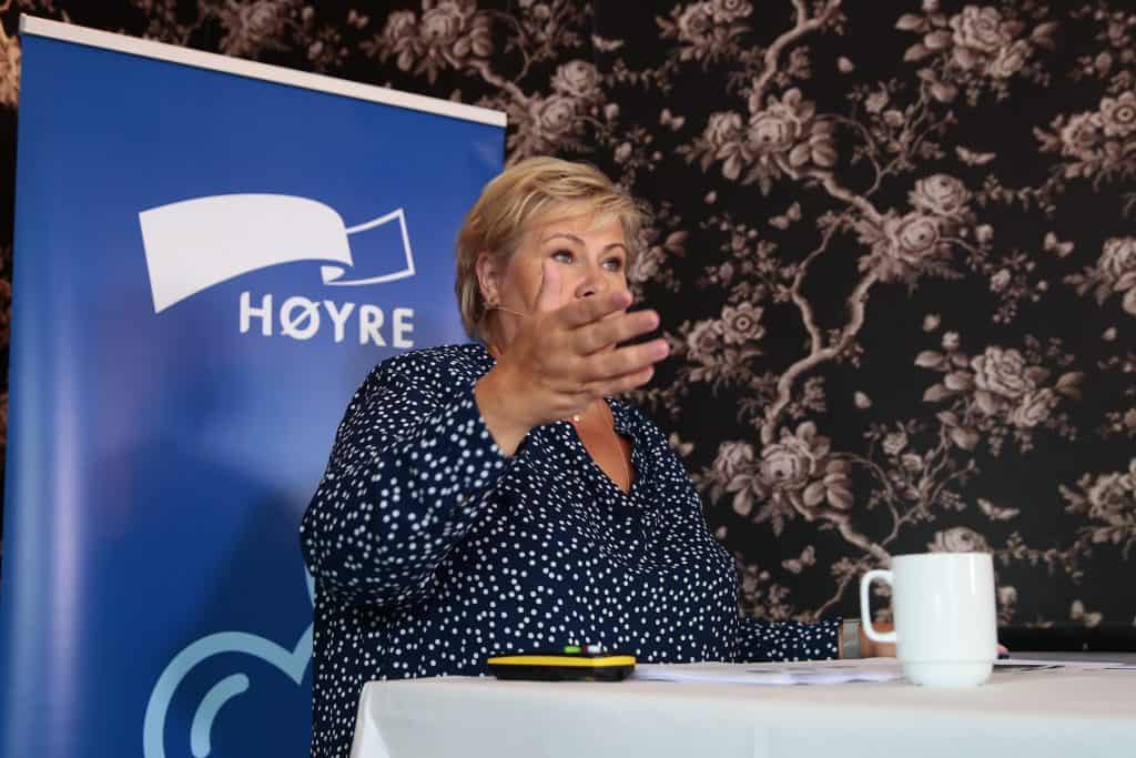 Statsminister Erna Solberg (H) møtte mandag pressen på Blom restaurant på åpningsdagen av Arendalsuka. Foto: Håkon Mosvold Larsen / NTB scanpix
