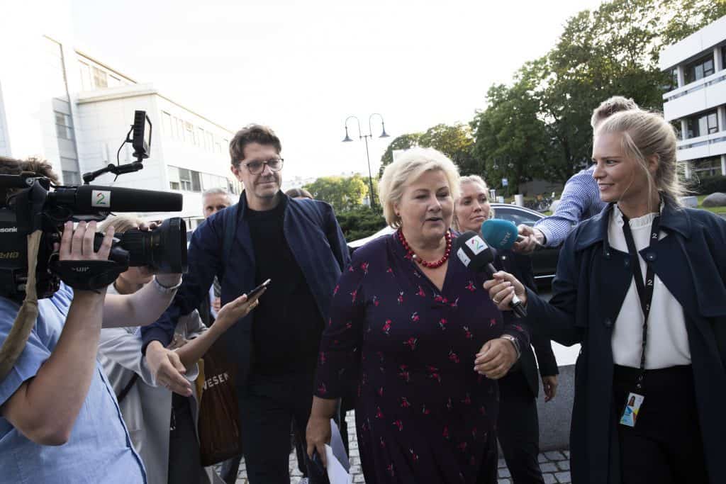 Økonomi og næringsliv: – Jeg kan si det samme til dere alle sammen: Dere kommer ikke til å få noen kommentarer om hva vi holder på med, sa Solberg da hun møtte pressekorpset som ventet utenfor NRK-bygget på Marienlyst i Oslo.