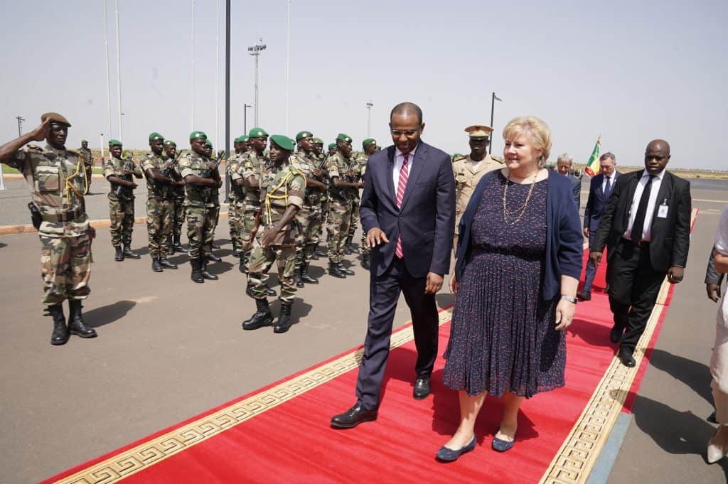 Statsminister Erna Solberg (H) har ankommet Mali, der hun ble tatt imot av landets statsminister og skal besøke norsk FN-soldater.