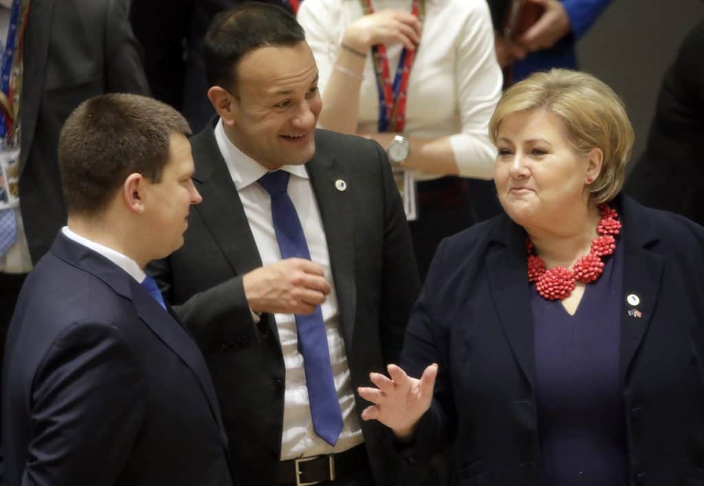 Statsminister Erna Solberg (H) er fredag æresgjest i Brussel der EØS-avtalen feires. Der svarte hun også kort på spørsmål om VGs omdiskuterte Giske-sak.