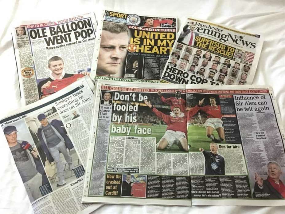 Med vikarjobb i Manchester United er det ikke overraskende at britiske redaksjoner som er hyppigst på Solskjær.