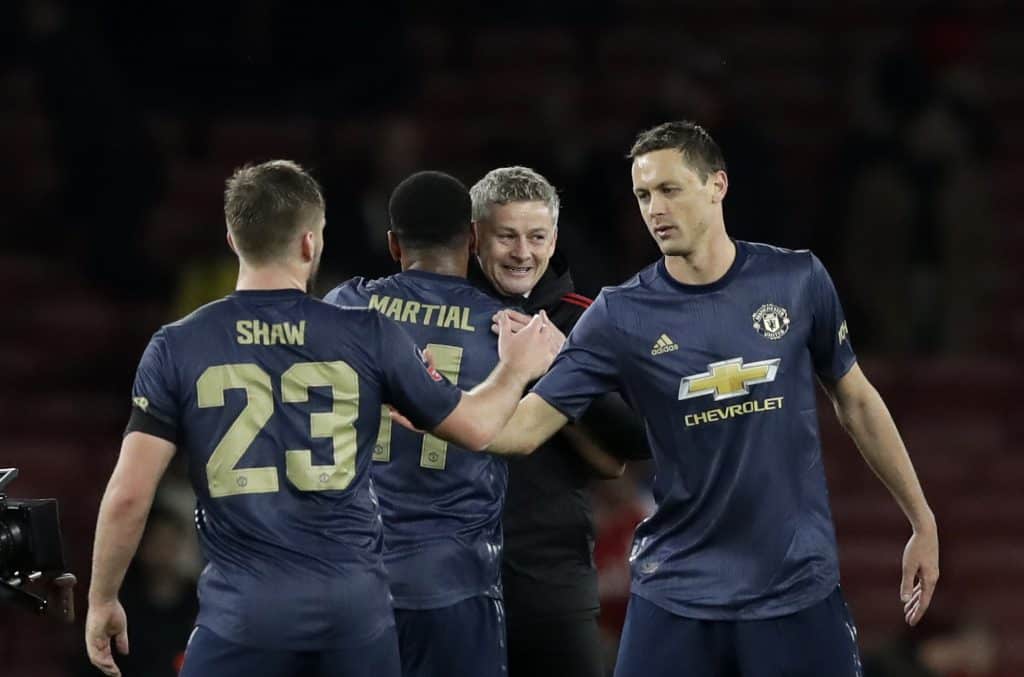 Manchester United-manager Ole Gunnar Solskjær smilte bredt etter at Arsenal ble feid ut av FA-cupen sist fredag. Foto: Matt Dunham / AP / NTB scanpix