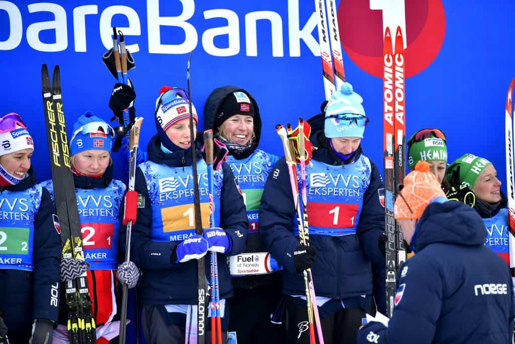 Nes med Amalie Håkonsen Ous, Tiril Udnes Weng, Lotta Udnes Weng tok sølvet, mens Heming-trioen Marion Rønning Huber, Astrid Uhrenholdt Jacobsen og Fanny Horn Birkeland fikk bronse.