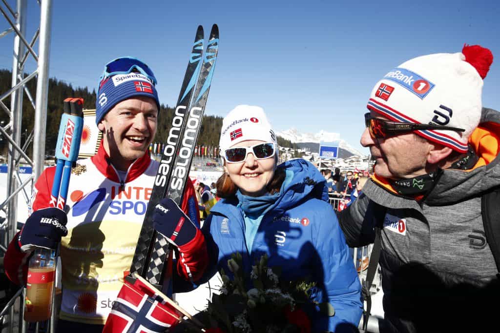 I målområdet var foreldrene Steinar og Randi-Kirsten nesten sjokkert over gullet. Det var de som fikk sønnen med ut på ski da han var en liten gutt.