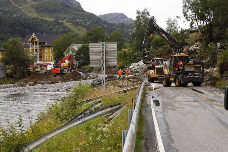 Økonomi og næringsliv: En rekke veier i Sogn og Fjordane har vært stengt det siste døgnet etter at heftige nedbørsmengder førte til en rekke ras tirsdag ettermiddag og kveld.