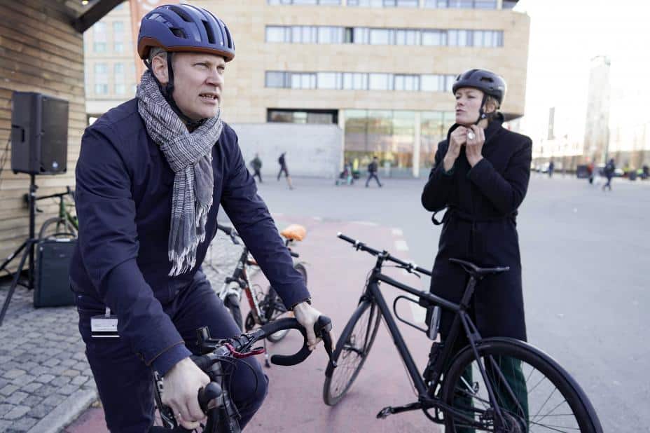 Kultur- og likestillingsminister  Anette Trettebergstuen og samferdselsminister Jon-Ivar Nygård åpnet tirsdag Sykle til jobben-aksjonen 2022. Foto: Heiko Junge / NTB