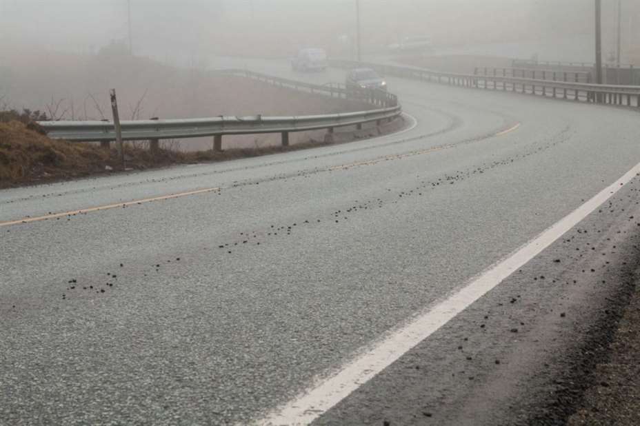 – En del av lasset ble mistet i veibanen midt i Brekke-svingen. To biler ble truffet av mye av dette, sier den ene bileieren.