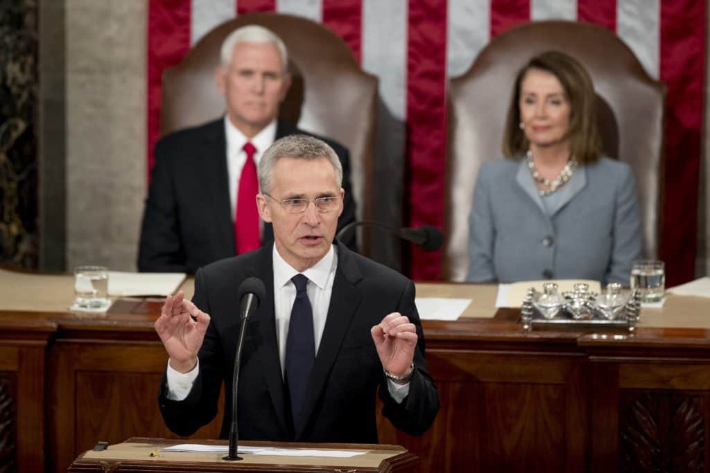 NATOs generalsekretær Jens Stoltenberg trakk fram både terrorangrepene i Norge og i New Zealand da han snakket om kampen mot terrorisme i Kongressen.