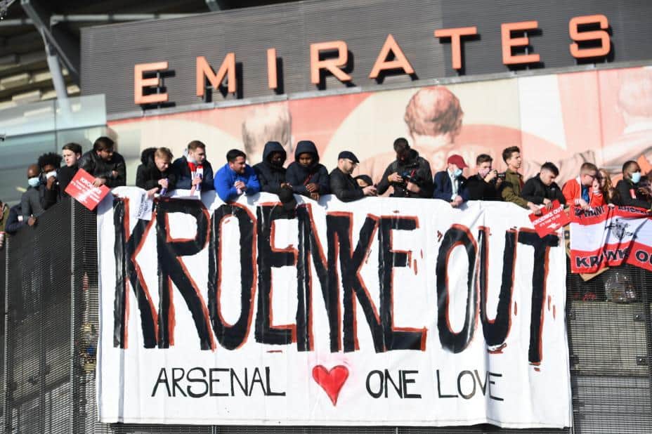 Sinnet mot Kroenke har tiltatt i styrke i takt med at klubben har seilt akterut i toppen av engelsk fotball. Fredagens protester skjer noen dager etter at Arsenal så seg tvunget til å trekke seg fra det kontroversielle Super League-prosjektet.