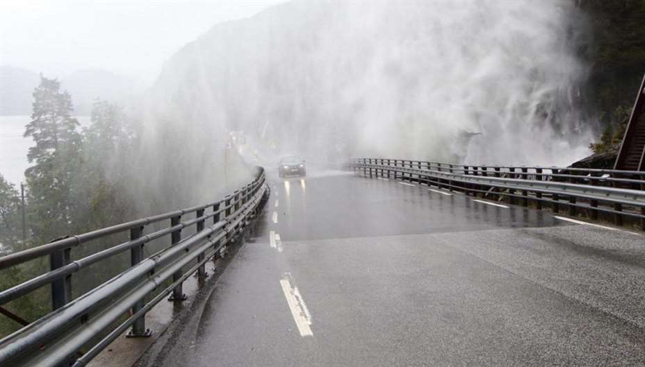 – Det har kommet stein og jordmasser ned fra fossen og ut i veien, derfor har vi måtte innførte manuell trafikkdirigering, opplyser operasjonsleder Knut Lyngholm i sørvest politidistrikt.