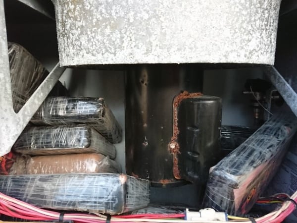 Narkotikahunden viste interesse for en frysekonteiner, som ifølge fraktpapirene skulle være tom. Da tollerne kikket inn i konteineren, fant de 21 pakker med kokain.