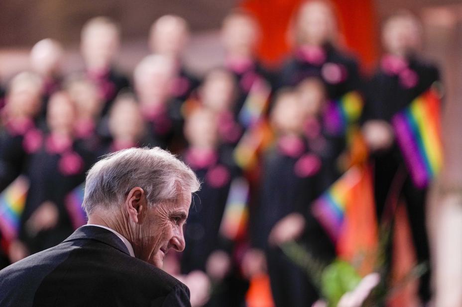 Støre går i regnbuetog og holder appell