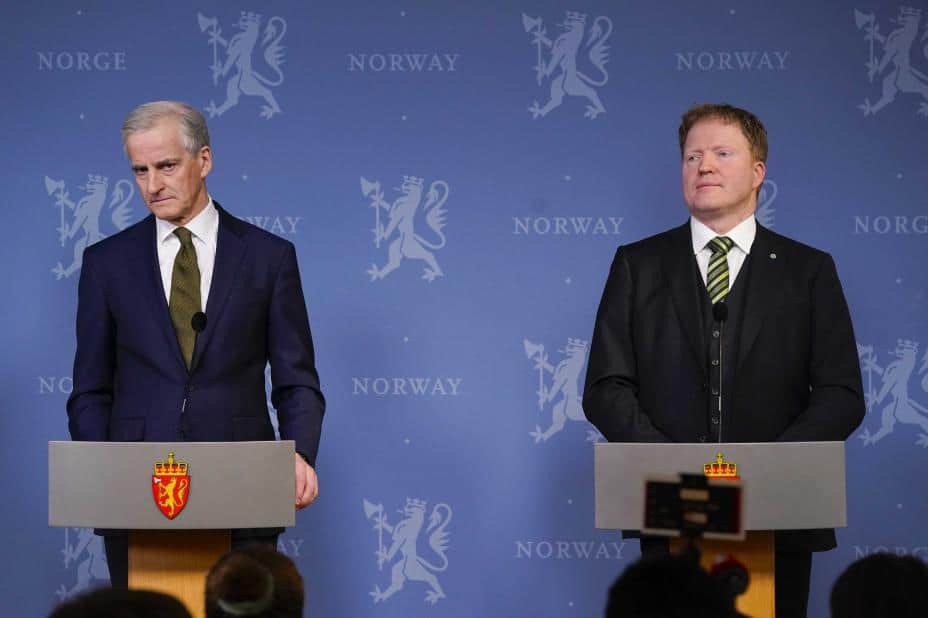 Statsminister Jonas Gahr Støre (t.v.) og kommunalminister Sigbjørn Gjelsvik under en pressekonferanse. Foto: Lise Åserud / NTB