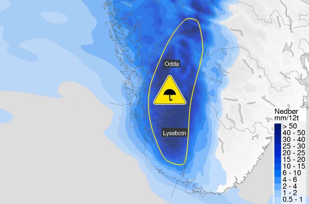 Uvær: Meteorologisk institutt har sendt ut gult farevarsel for mye regn i Rogaland og Hordaland fra natt til fredag til fredag ettermiddag.