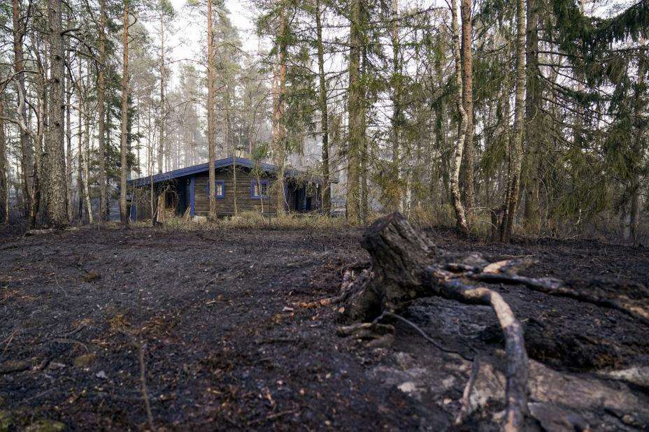 Hyttene ble reddet, men mye skog er svidd av. Foto: Stian Lysberg Solum / NTB