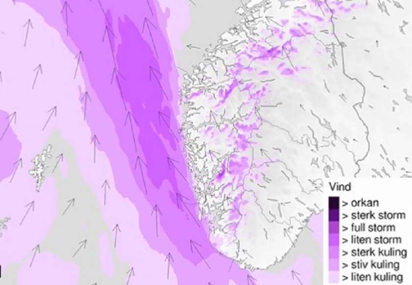 Det ventes liten til full storm fra sørøst, og kraftigst vind blir det på fjellet og i kyststrøkene, heter det i varselet fra YR.