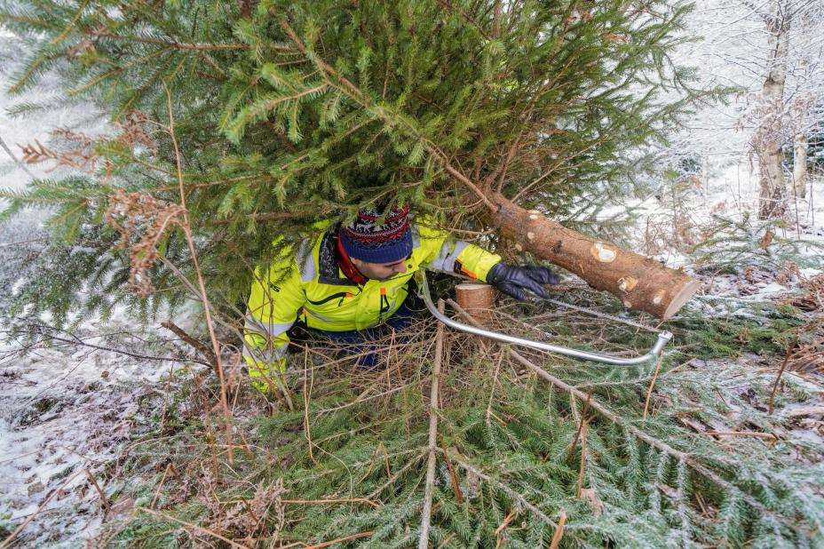 – Juletreet i vandrehallen er en fin tradisjon, og selv om fellingen ble litt spesiell, håper jeg det vil bidra til en lun stemning, sier han og bedyrer at han er en erfaren juletrefeller.
