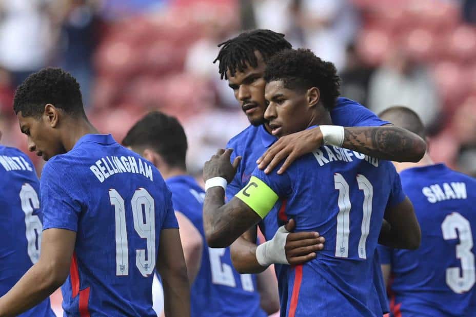 Sport: Kaptein Rashford var sikkerheten selv fra elleve meter etter halvspilt 2. omgang, før han ble byttet ut sju minutter senere. Det var gode Jack Grealish som skaffet Englands straffespark da han ble klippet ned av bortelagets Tiberu Capusa.