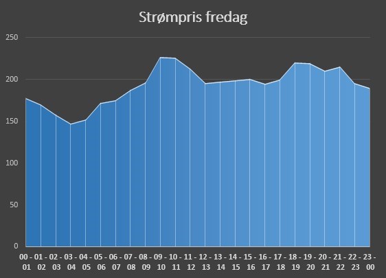 Snittprisen fredag vil ligge på 194 øre per kilowattime.