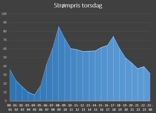 I natt kommer prisen ned i 7 øre, mens den stiger til 85 øre en periode i morgen tidelig.