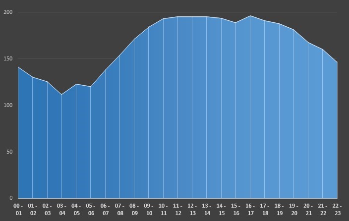 Den høyeste prisen mellom 10 på formiddagen og 18 på kvelden. Da vil strømprisen komme opp i 1 krone og 97 øre per kilowattime med avgifter.