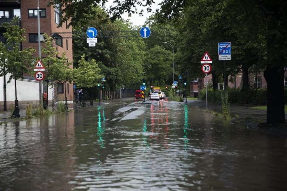 Vær: Mellom klokka 19.37 og 19.47 ble det målt mer enn 21 millimeter nedbør. Dette kalles for en 200-årsverdi, opplyser Meteorologisk institutt.