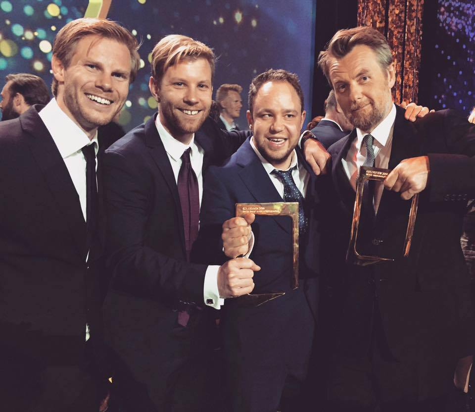 Roy Kenneth S. Jacobsen fra Auklandshamn kunne sammen med Kim Peder Rismyhr, Erling Due Bergseth og Fredrik Skavlan motta den velfortjente Gullruten for beste sportssending, melder Sveiobladet.net.
