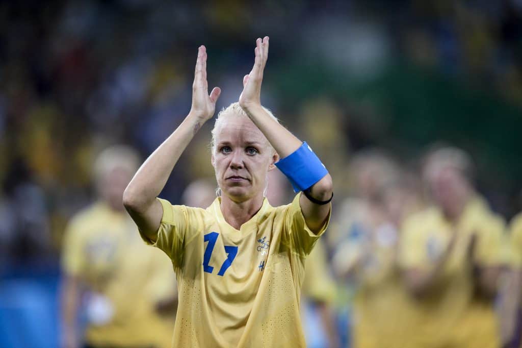 Caroline Seger scoret da Sveriges kvinnelandslag noterte publikumsrekord med 25.882 tilskuere i 1-2-tapet mot Tyskland lørdag. Foto: Pontus Lundahl, TT / NTB scanpix