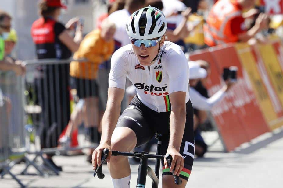 Sport: Romain Gregoire fra Frankrike var sterkest på de 107,2 kilometerne. Tyske Lenny Martinez tråkket inn til bronsemedaljen. Resten av hovedfeltet kom i mål ti sekunder bak trioen.