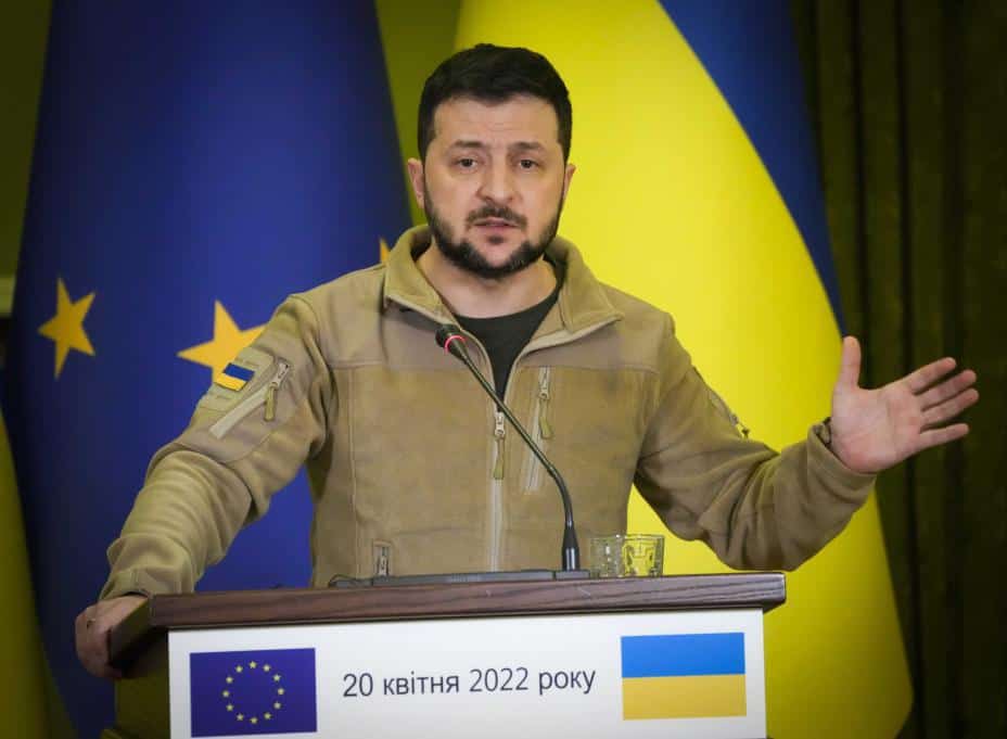 Wirtualna Polska publiserte tidligere fredag et langt intervju med Zelenskyj gjort av journalister fra seks polske redaksjoner. På spørsmål om hvordan Ukraina vil straffeforfølge krigsforbrytelser, viser Zelenskyj blant annet til at det «nylig ble oppdaget en massegrav der 900 mennesker ble gravlagt».