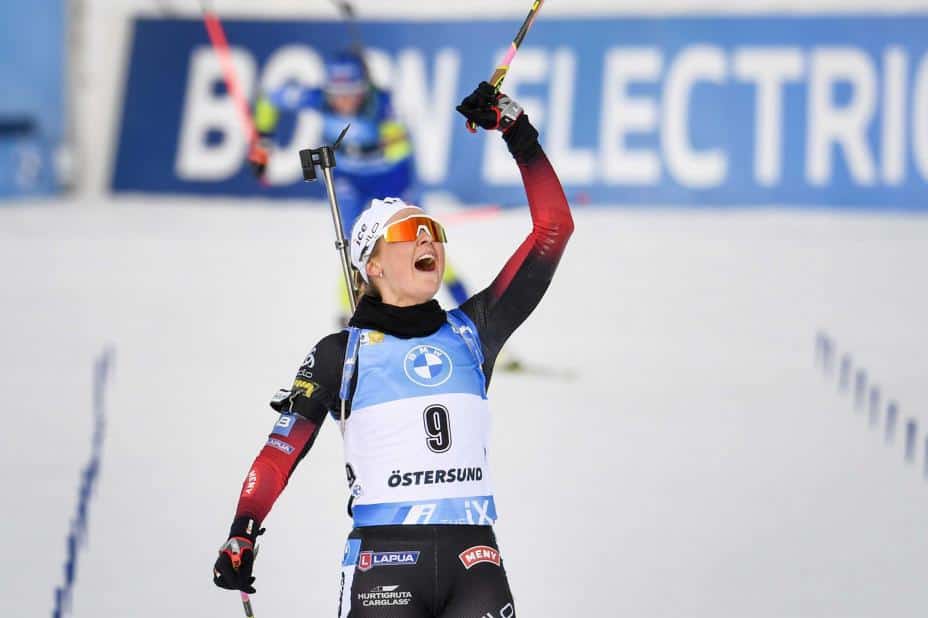 Tandrevold slo Marte Olsbu Røiseland på 2.-plass med 0.02,4 minutter. Sistnevnte måtte tåle én bom på siste skyting.