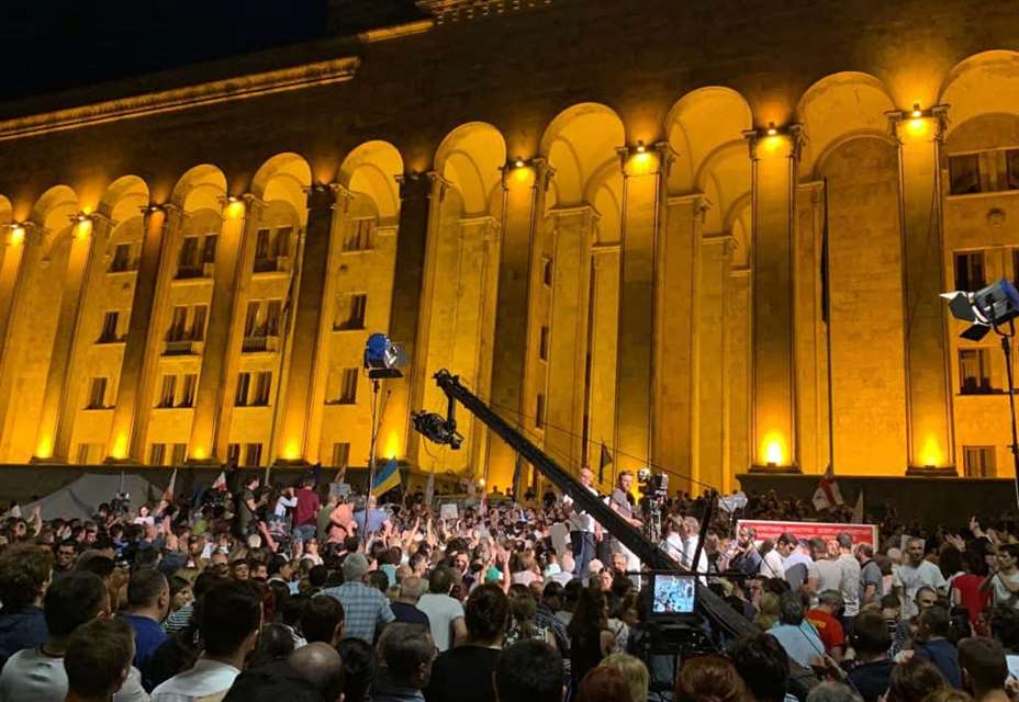 Mer enn 10.000 personer demonstrerer i byen etter at den russiske parlamentarikeren Sergeij Gavrilov holdt en tale i den georgiske nasjonalforsamlingen. Han er i landet som deltaker på et internasjonalt forum for ortodokst kristne land.