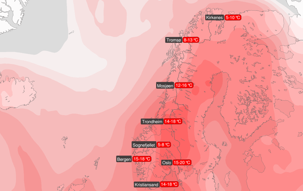 Denne uken kommer endelig varmen igjen og vi kan oppleve temperaturer opp mot 20 varmegrader i Sør-Norge.