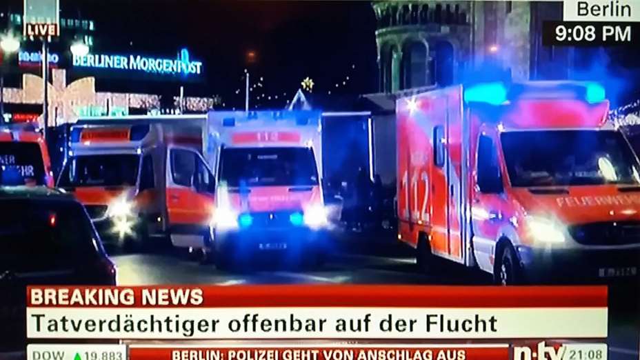 «En lastebil kjørte akkurat over Breitscheidplatz. Våre kolleger forteller om at flere er skadet.»