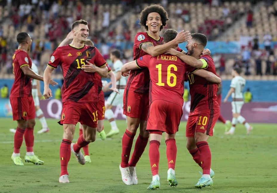 Det ble spilt langt opp på Romelu Lukaku, som fikk kontroll i Portugals 16-meter, vendte og spilte ut til Kevin De Bruyne, som ble taklet av Raphaël Guerreiro. Ballen ble plukket opp av Thomas Meunier, som spilte til Thorgan Hazard ute på venstresiden.