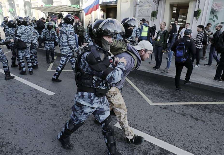 Likevel ble et 70-tall mennesker pågrepet av opprørspoliti i Moskva og ytterligere 80 under en ikke-godkjent støttedemonstrasjon i St. Petersburg.