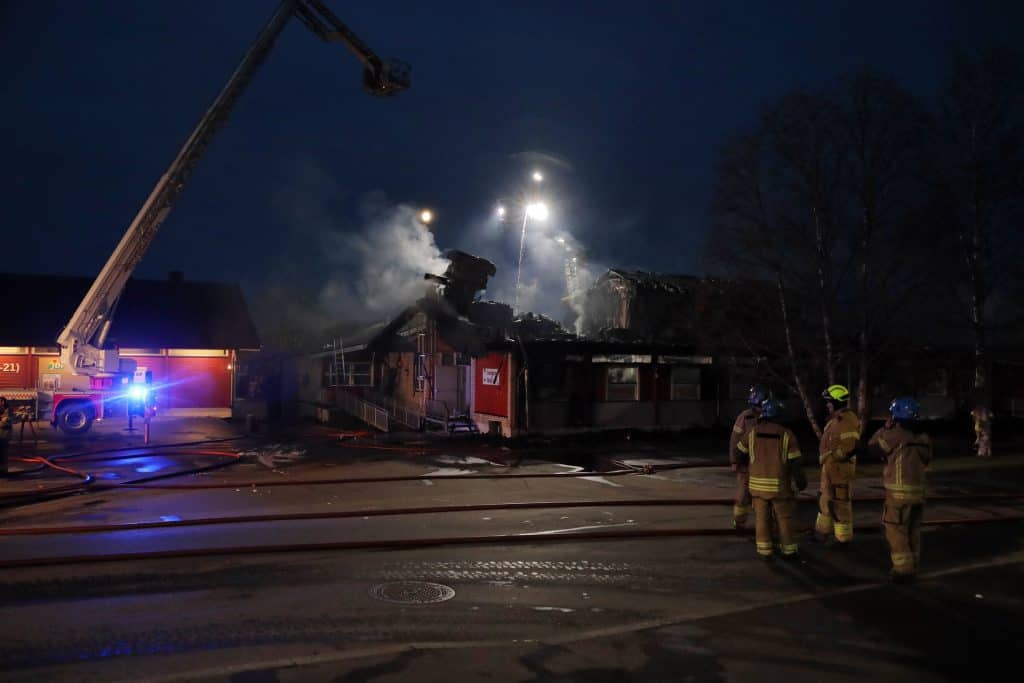 Kriminalitet og rettsvesen: – Straks-etterforskning på stedet gjorde at vi konkluderte med at brannen var påsatt, og to menn er pågrepet, opplyste operasjonsleder Ronny Samuelsen i Øst politidistrikt til NTB klokken 2.47. Han ønsker ikke å gi flere detaljer om de mistenkte.